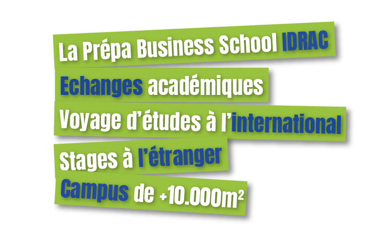 La Prépa Business School IDRAC offre un programme d'excellence qui permet aux étudiants de passer 2 ans au Maroc à GEC Marrakech-École de Management + 1 an en France dans l'une des 10 écoles partenaires en France, avec l'obtention d'un diplôme reconnu (Bachelor).